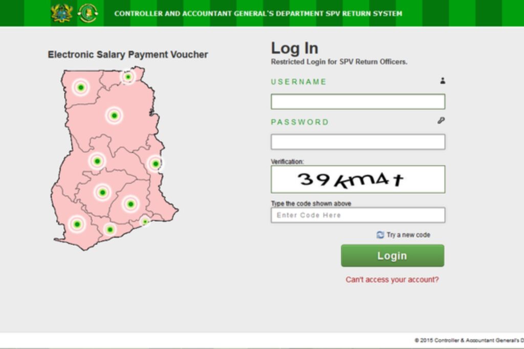 ESPV is available to authorized Heads of Management Units and payroll officers within the Government of Ghana.
